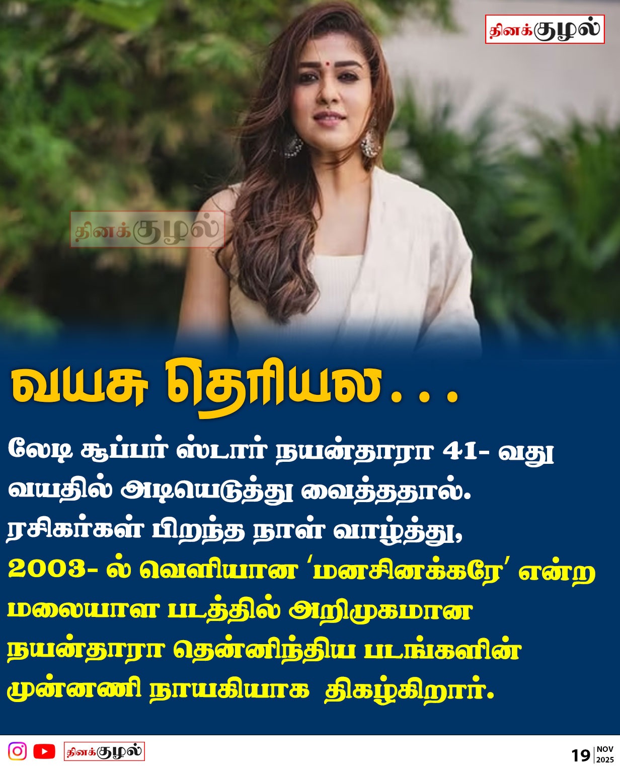 நயன்தாரா வயது 41… #Nayandhara #LadySuperStar #TamilCinima #CinimaNews #TamilNews #dinakuzhal #BreakingNews...