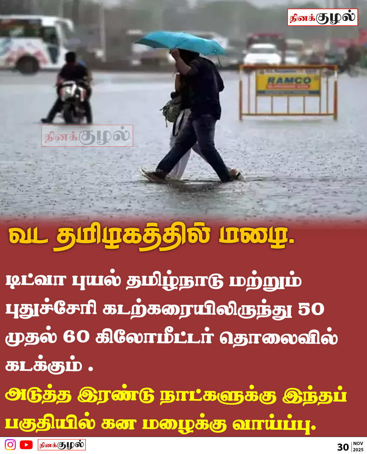 வட தமிழகத்திற்கு மழை எச்சரிக்கை.