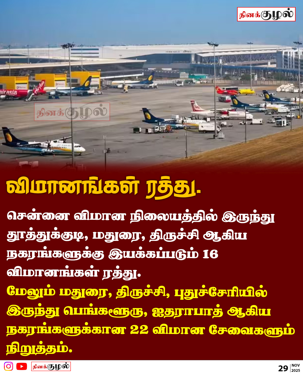 தமிழ்நாட்டில் விமான போக்குவரத்து பாதிப்பு.