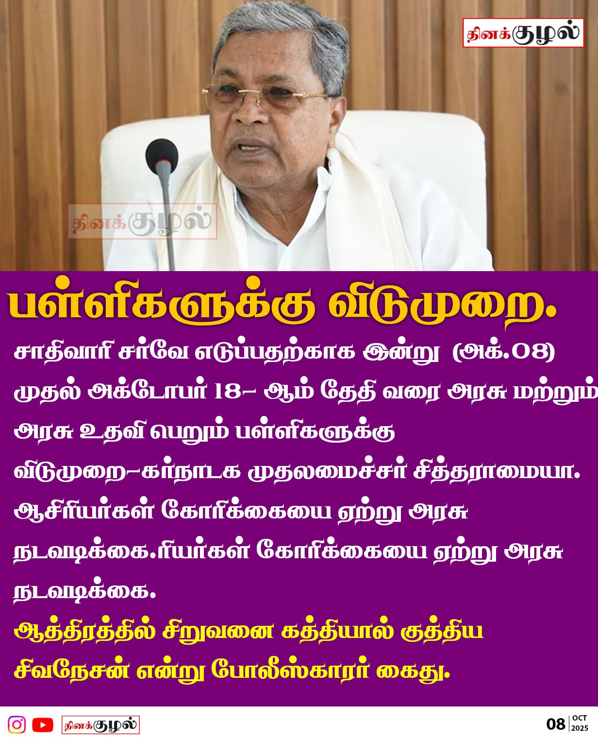 கர்நாடகத்தில் பள்ளிகளுக்கு 10 நாள் விடுமுறை ஏன்? #Castecensus #Karnataka #TamilNews #dinakuzal #shortnes #தமிழ்செய்திகள் #தினக்குழல் #சாதிக்கணக்கெடுப்பு #கர்நாடகம்Continue Reading