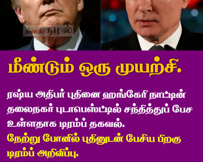 டிரம்பின் தந்திரம் பலிக்குமா ? 2025-10-16 By: dinakuzal On: October 16, 2025 In: உலகம் With: 0 Comments Continue Reading