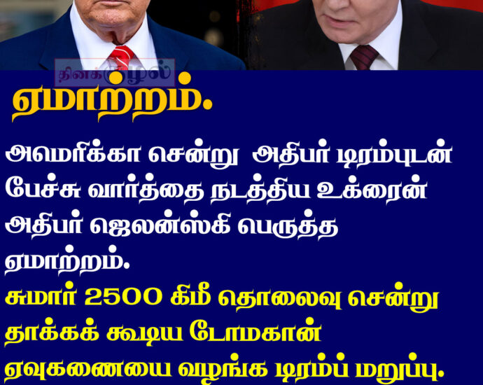 ஏவுகணை தர டிரம்ப் மறுப்பு. 2025-10-18 By: dinakuzal On: October 18, 2025 In: உலகம் With: 0 Comments Continue Reading