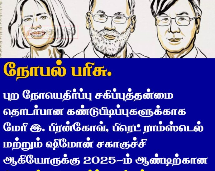 மருத்துவத்திற்கான நோபல் பரிசு அறிவிப்பு.