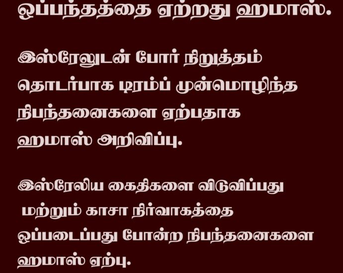 போரை நிறுத்துவதாக ஹமாஸ் அமைப்பு ஒப்புதல்.