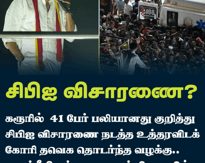 கரூரில் 41 பேர் பலியானது குறித்து சிபிஐ விசாரணை நடத்த உத்தரவிடக் கோரி தவெக தொடர்ந்த வழக்கு. 2025-09-29 By: dinakuzal On: September 29, 2025 In: தமிழ்நாடு With: 0 Comments Continue Reading