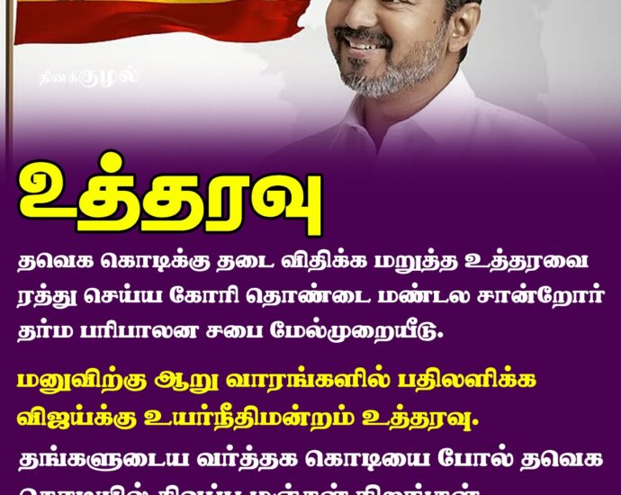 தவெக கொடிக்கு எதிர்ப்பு.. விஜய்க்கு உத்தரவு.