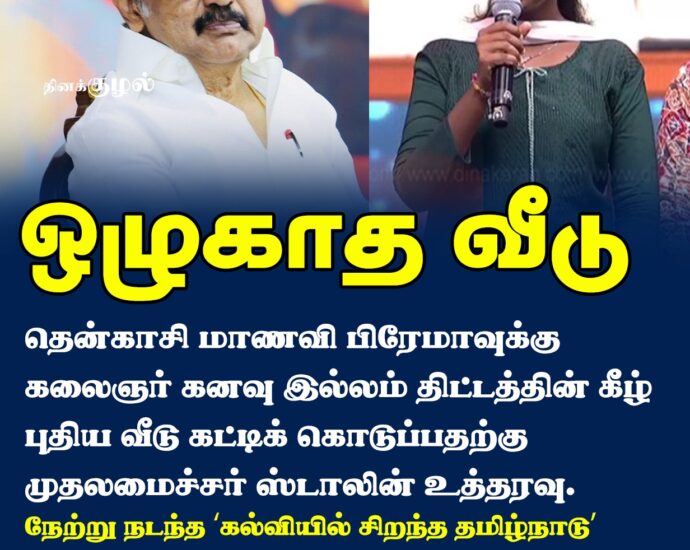 மாணவிக்கு வீடு. முதல்வர் உதவி.