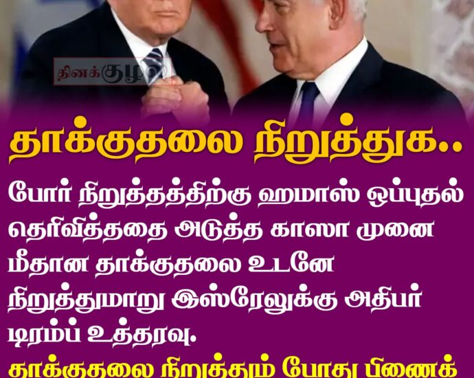 கஸா மீதான தாக்குதலை நிறுத்த டிரம்ப் உத்தரவு. 2025-10-04 By: dinakuzal On: October 4, 2025 In: உலகம் With: 0 Comments Continue Reading
