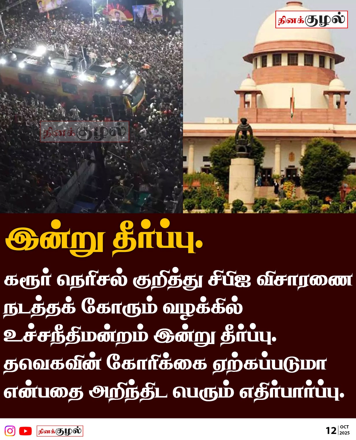 சிபிஐ விசாரணைக் கேட்டு விஜய் வழக்கு. 2025-10-07 By: dinakuzal On: October 7, 2025 In: தமிழ்நாடு With: 0 Comments Continue Reading