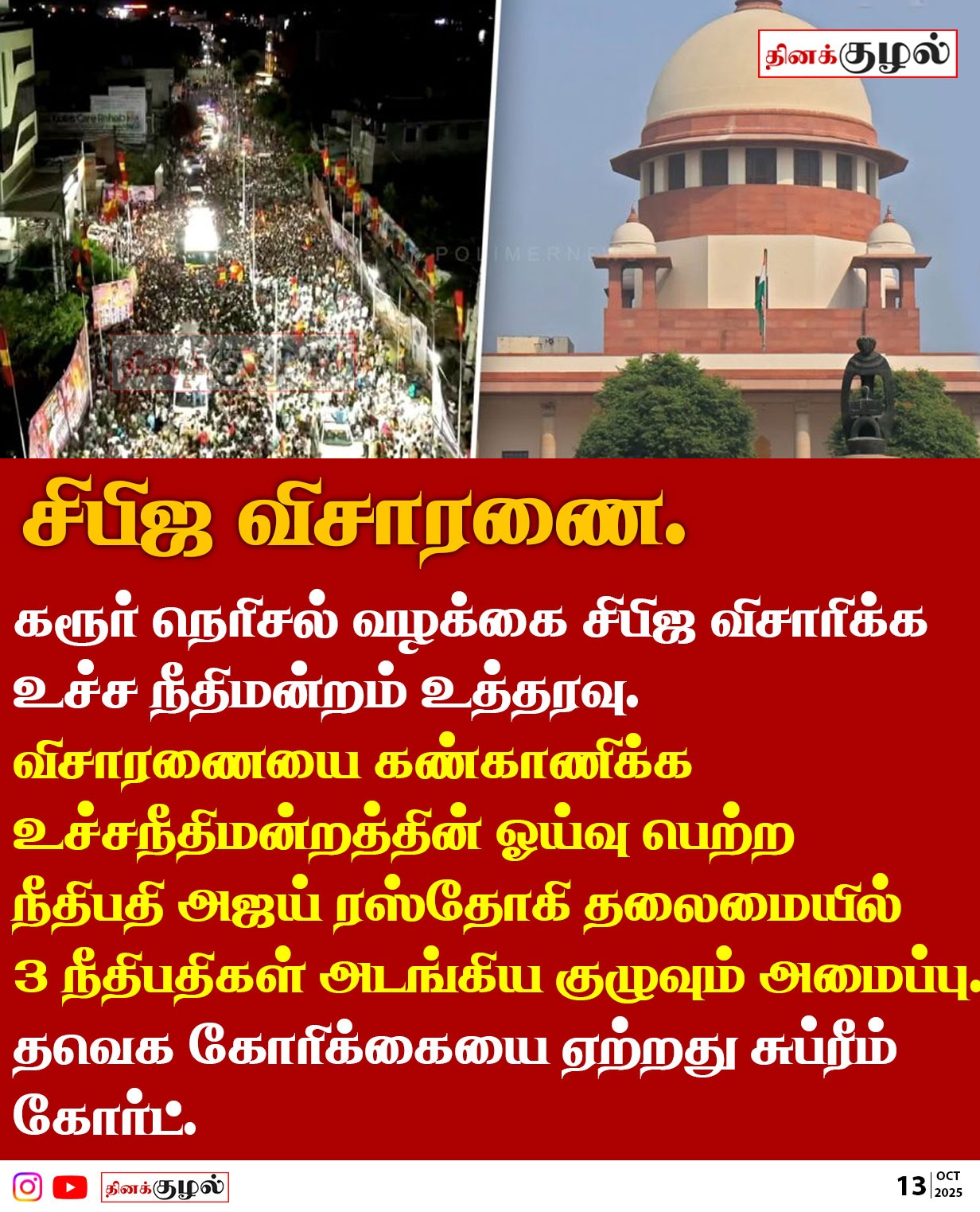 • விஜய் கோரிக்கை ஏற்பு- சிபிஐ விசாரிக்க உத்தரவு.