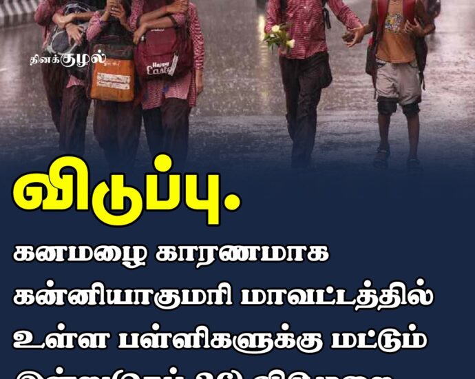 குமரியில் பள்ளிகளுக்கு விடுமுறை.